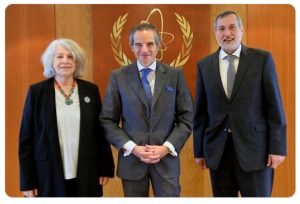 10/06/2022Os Secretários da ABACC, Lic. Elena Maceiras e Dr. Marco Marzo, participaram de 6 a 10 de junho de 2022, da Reunião da Junta de Governadores da Agência Internacional de Energia Atômica (AIEA), em Viena. Na oportunidade, os Secretários se reuniram com o Diretor Geral da AIEA, Embaixador Rafael Grossi.